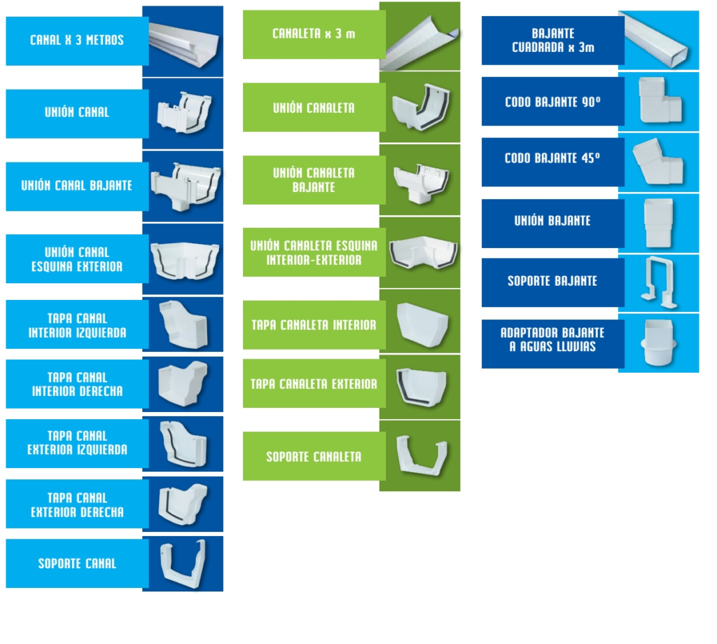 Los accesorios y bajantes del Sistema de Canales están diseñados para acondicionarse a cualquier lugar permitiendo realizar cambios de dirección, empalmes, derivaciones y conexiones totalmente herméticas, versátiles, inoxidables, livianas y de fácil instalación. No requieren de soldaduras ni selladores, facilitando la limpieza ya que se puede destapar el extremo de la canal para barrer.